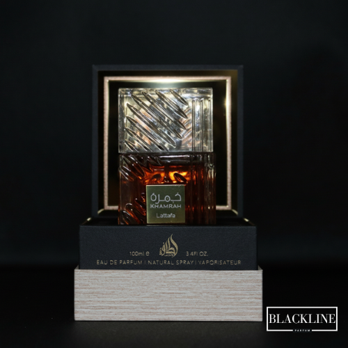 Khamrah de Lattafa est un parfum oriental gourmand et épicé, mêlant dattes, vanille, ambre et épices.