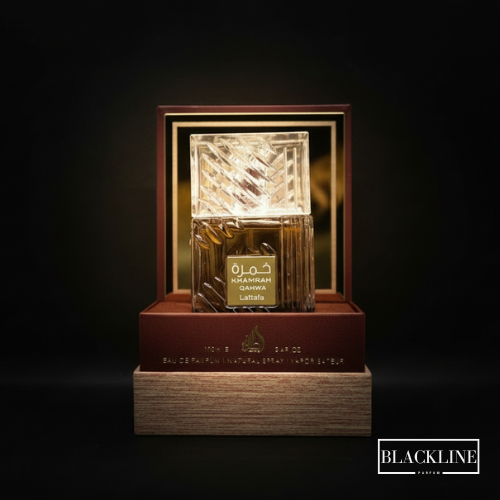 Khamrah Qahwa est un parfum oriental gourmand et épicé, mêlant café Arabica, vanille, praliné et épices.